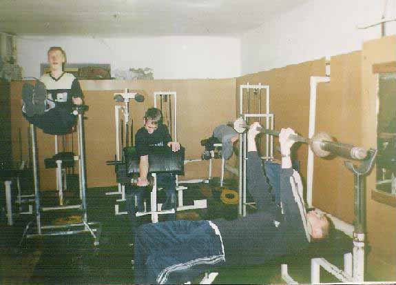 Уроки по физкультуре проходят в тренажёрном зале на тренажёрах.